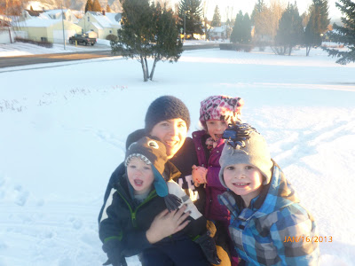 A day playing out in the snow wears a kid out. She passed out while talking to Jordan. She also spent the night with Erica last night while we were at the Police "Christmas in January" party. Terri and Jordan watched the Teagie Pie. Thanks everyone, we had lots of fun.
